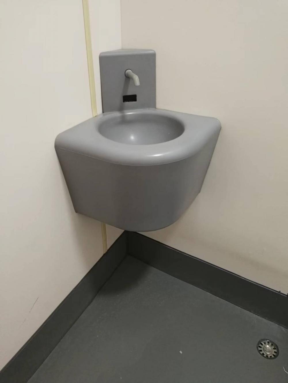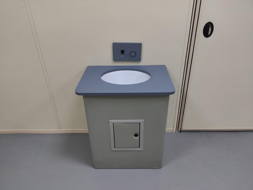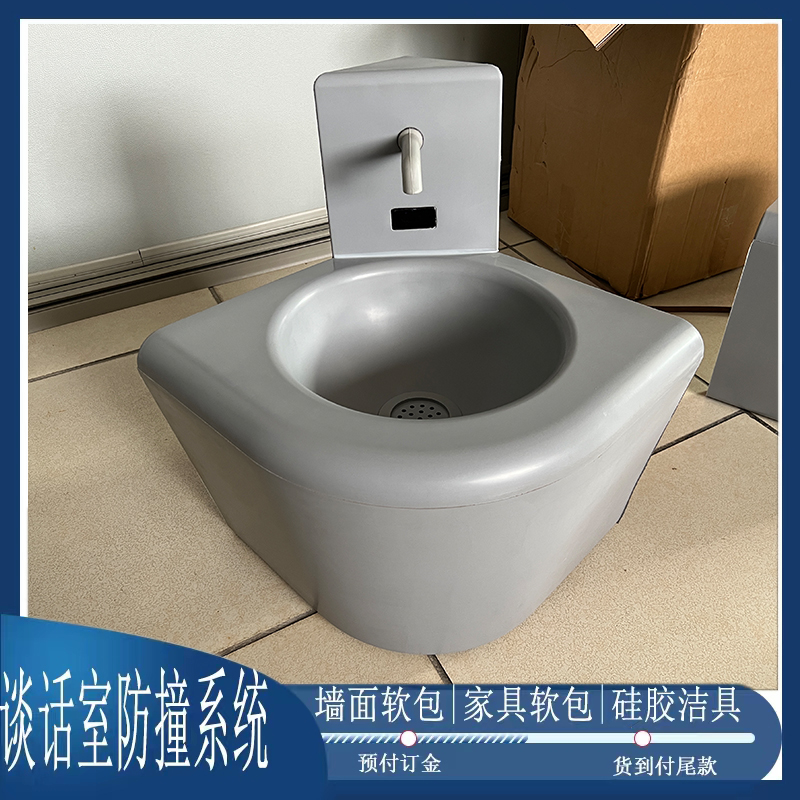 防撞软包硅胶洗手台适用于纪检委、公安局、法院、派出所、看守所、检察院、询问室、讯问室、留置室、监狱、羁押室、禁闭室、审讯室、谈话室、等执法办案区。硅胶防撞洗手台规格尺寸L690*W490*H800,配备斜/正木质柜体、医用硅胶按键面板、陶瓷/不锈钢脸盆、为了达到安全防撞,外层包裹硅胶面层,防水防潮阻燃等功能,有效提高办案效率。