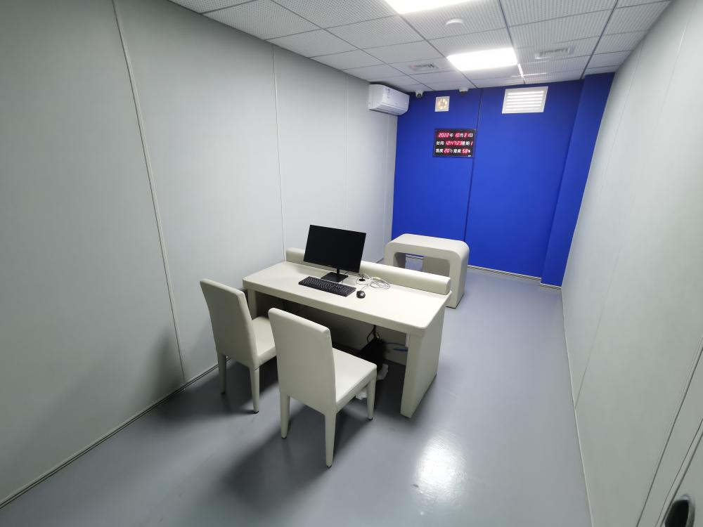 谈话室内干净整洁、宽敞明亮,“面对面谈话”摆放软包桌椅,防撞软包桌椅普遍设计是两个人的座位,对面坐一位被谈话对象,防撞桌子椅子的材质:三合板木板+3公分阻燃纳米棉+阻燃皮,皮革耐磨不脱皮不掉色,性价比极高,桌子尺寸是根据人体工程学,一般是1600毫米长,700毫米宽,760毫米高,桌面上如果需开孔、安装多媒体插座,方便使用电脑,网线电线线不凌乱,安装拾音器,防撞椅子黄金尺寸是高950mm,座宽480mm,深度470,靠背高500mm,椅子款式可定制露脚与全包或扶手及小方凳,颜色主要有米黄色、灰色、黑色(可定制)。配置好电脑、监控等办公设备,与电影中压抑、封闭的谈话室形成鲜明反差,为谈话对象营造了既庄重严肃又温馨的谈话环境和氛围,让被谈话对象感受到平等待遇和关怀,敞开心扉谈问题。